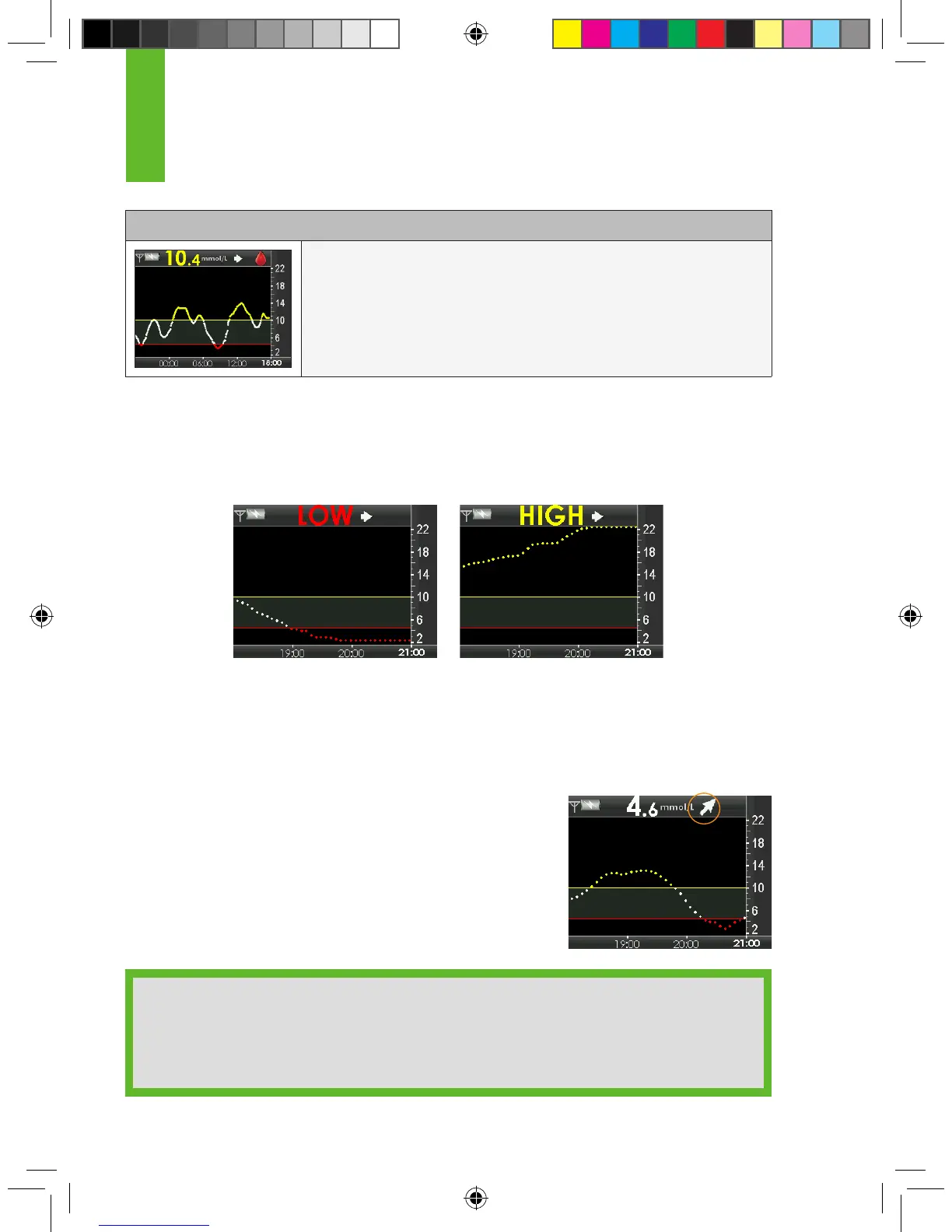 2.2 mmol/L and “HIGH” when the most recent glucose reading is greater than