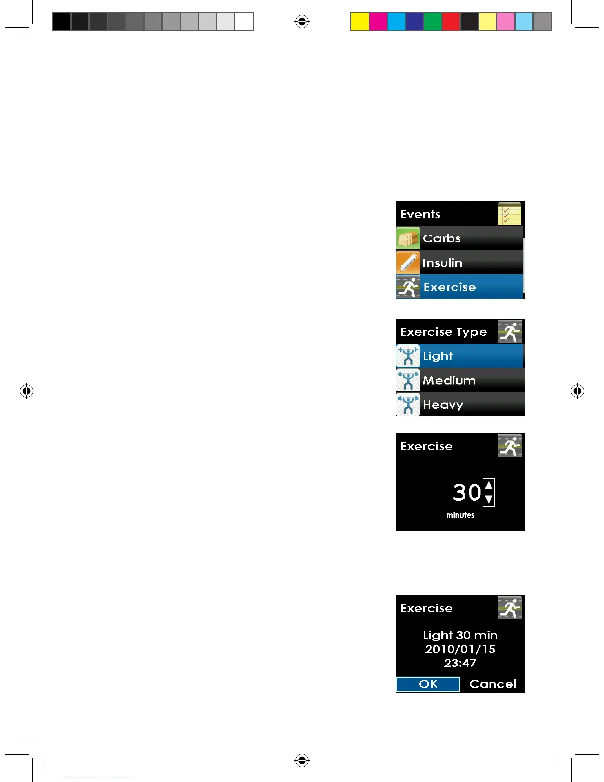 The exercise event lets you enter the intensity (light, medium, or heavy) and