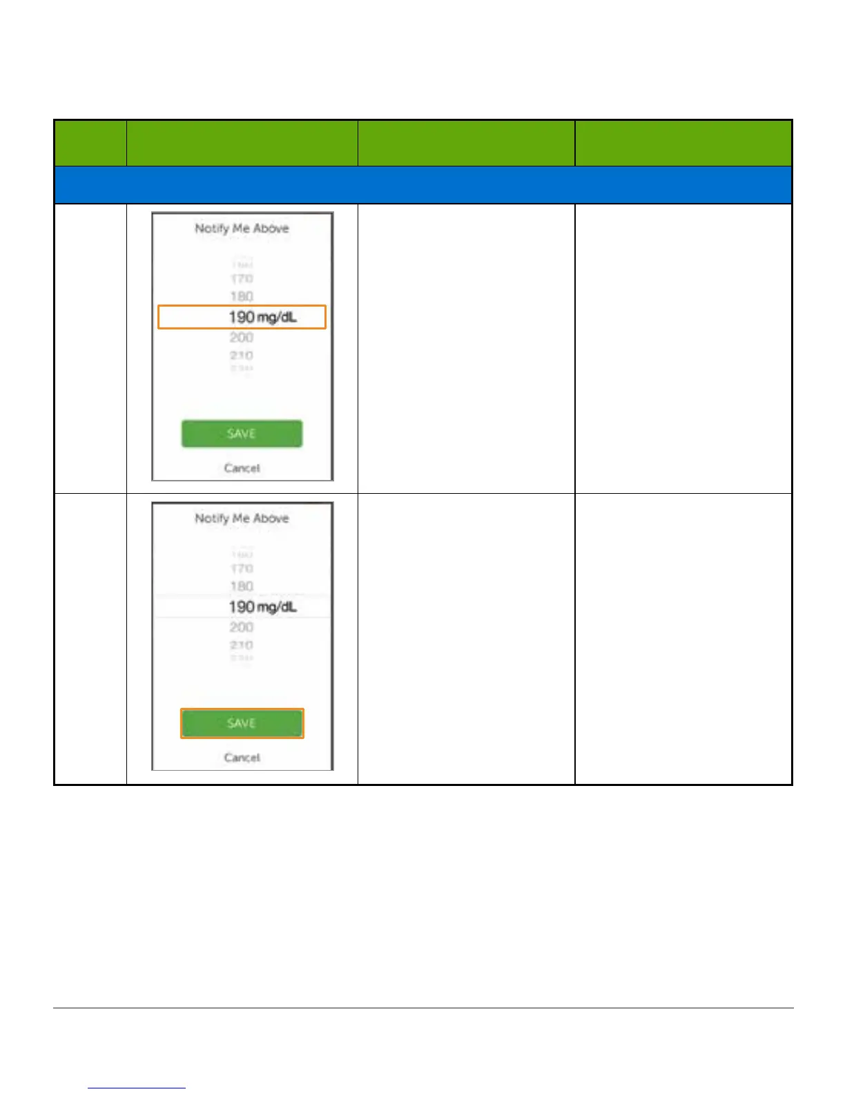 from current level (mg/dL).