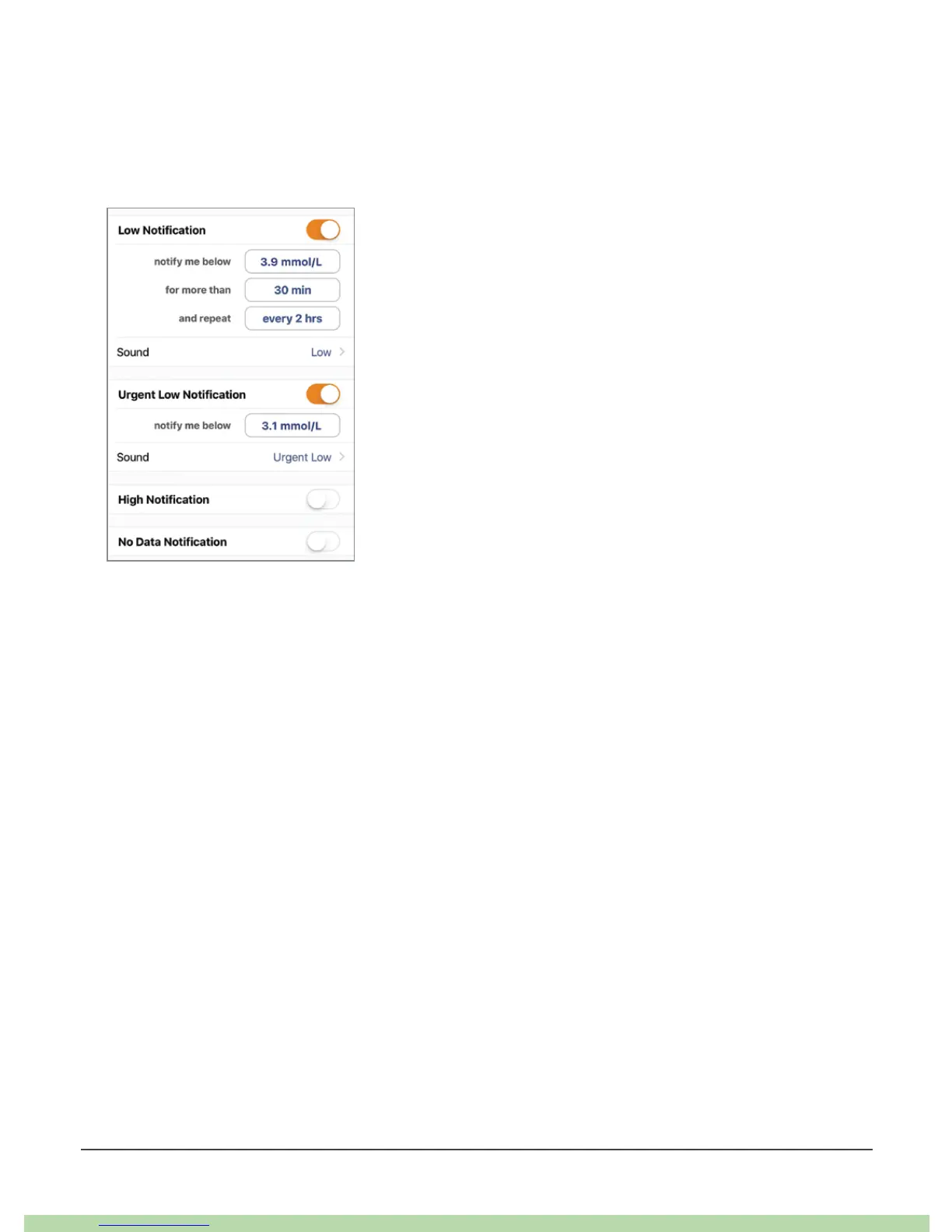 They can also change it to get notified every 2 hours if you stay under 3.9 mmol/L.