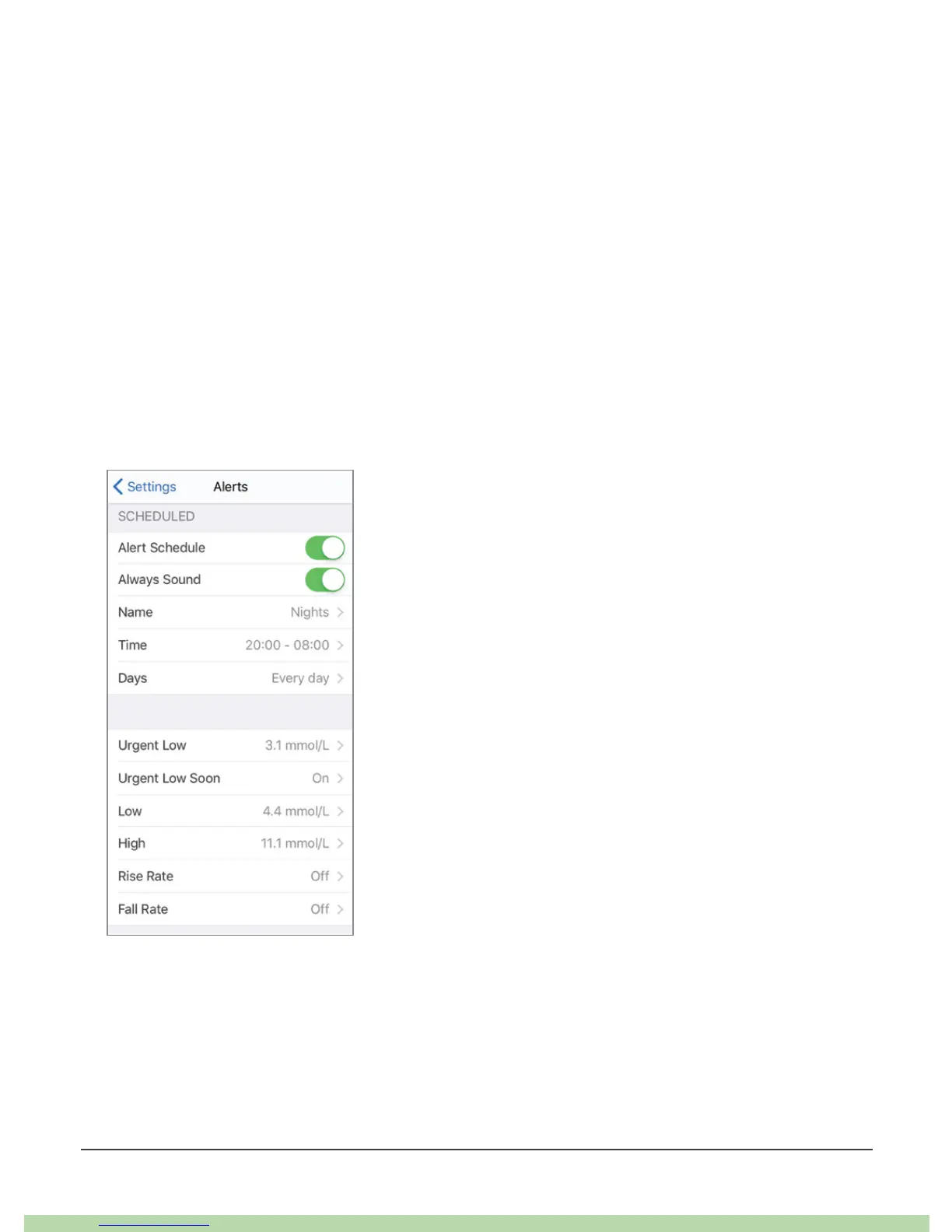 When you turn on the Alert Schedule for the first time, your default glucose alert