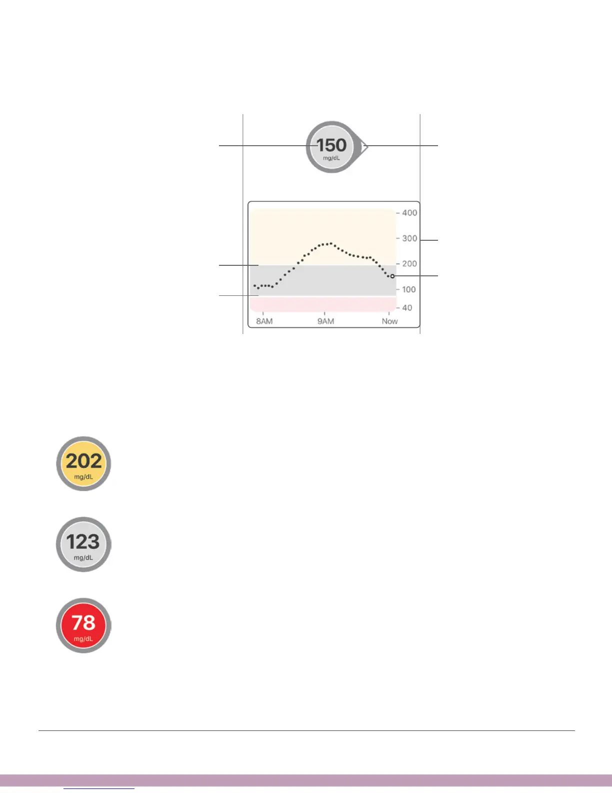 This section shows you how to interpret your G6 reading, trend arrow, and graph.