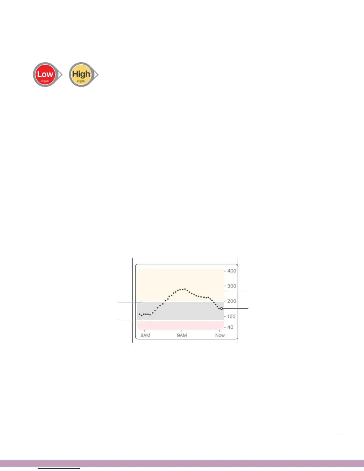 • The horizontal white lines show your High and Low Alert levels. Your glucose is: