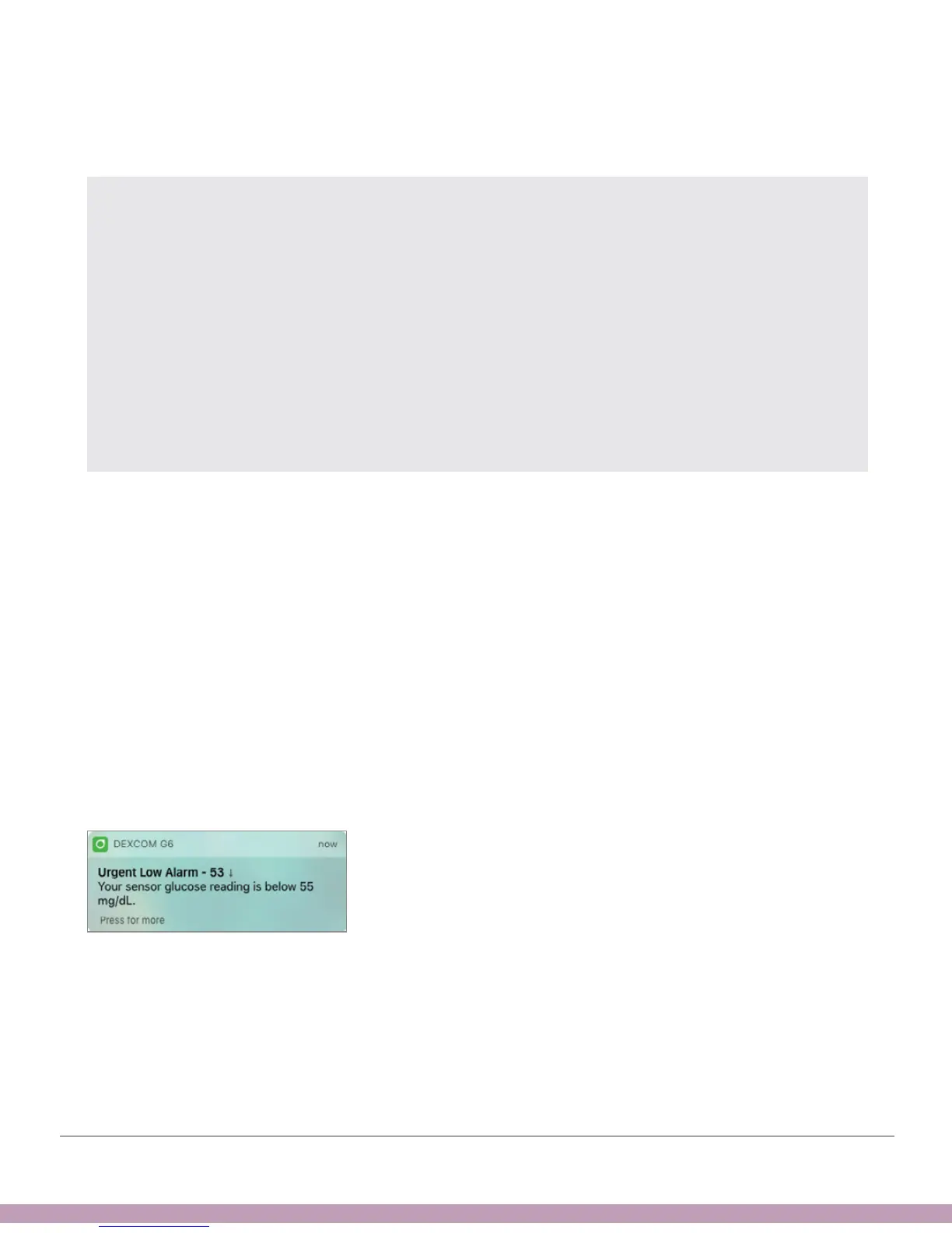 The alarm lets you know when your G6 reading drops to or below 55 mg/dL. Think of it
