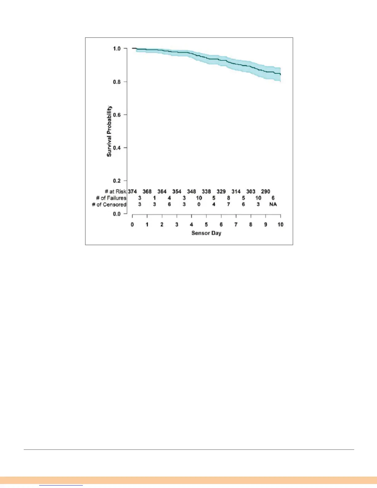 Figure 1-A. Kaplan Meier Curve of Sensor Life (Adults; N = 164)