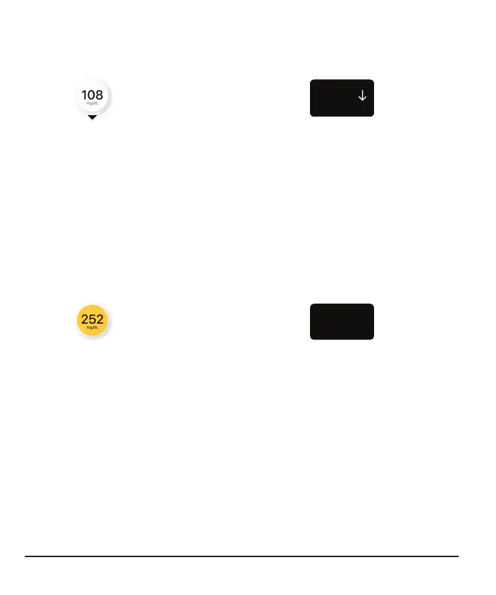 Down arrow: Your glucose is falling between 60–90mg/dL in 30minutes