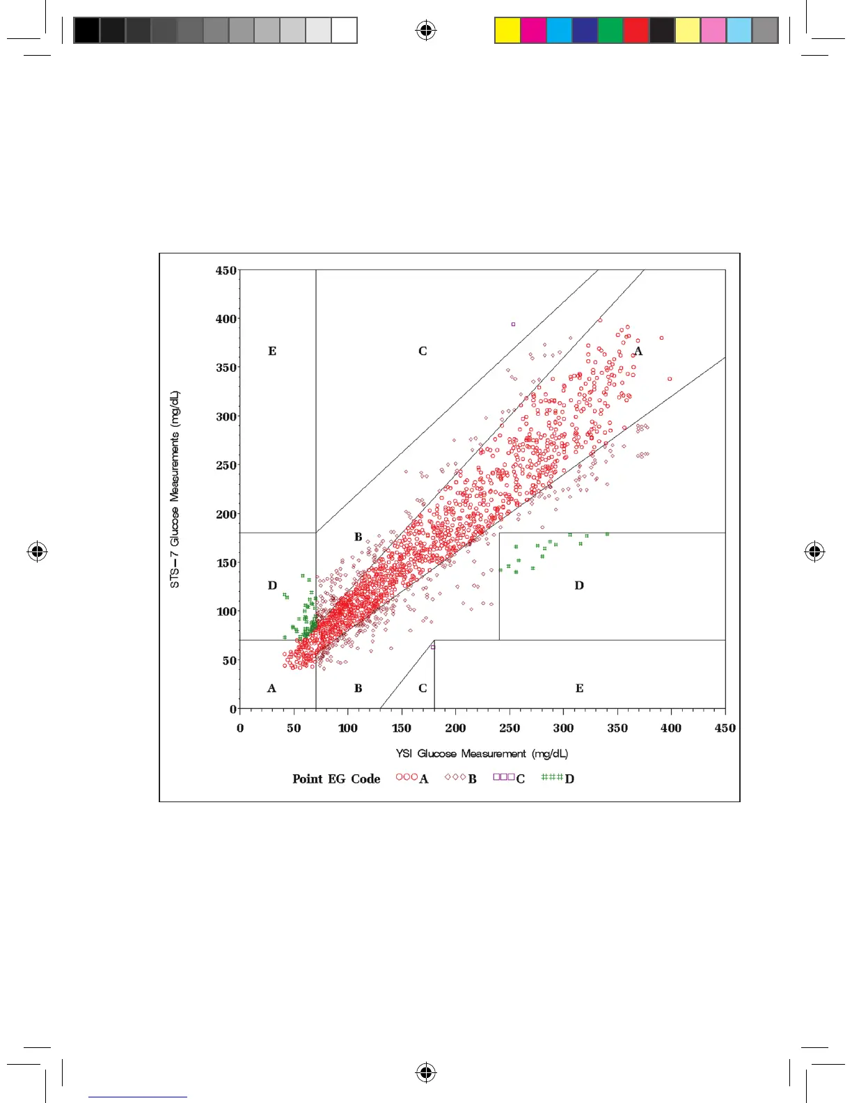 Clarke Error Grid, SEVEN PLUS Results Compared to YSI Results
