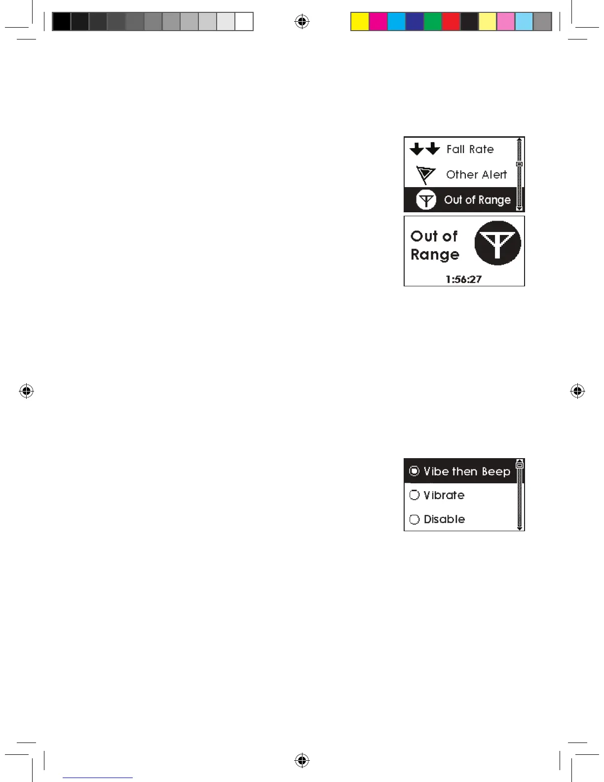 b. If you select Vibe then Beep or Vibrate, you will then set the amount of time “Out of Range”