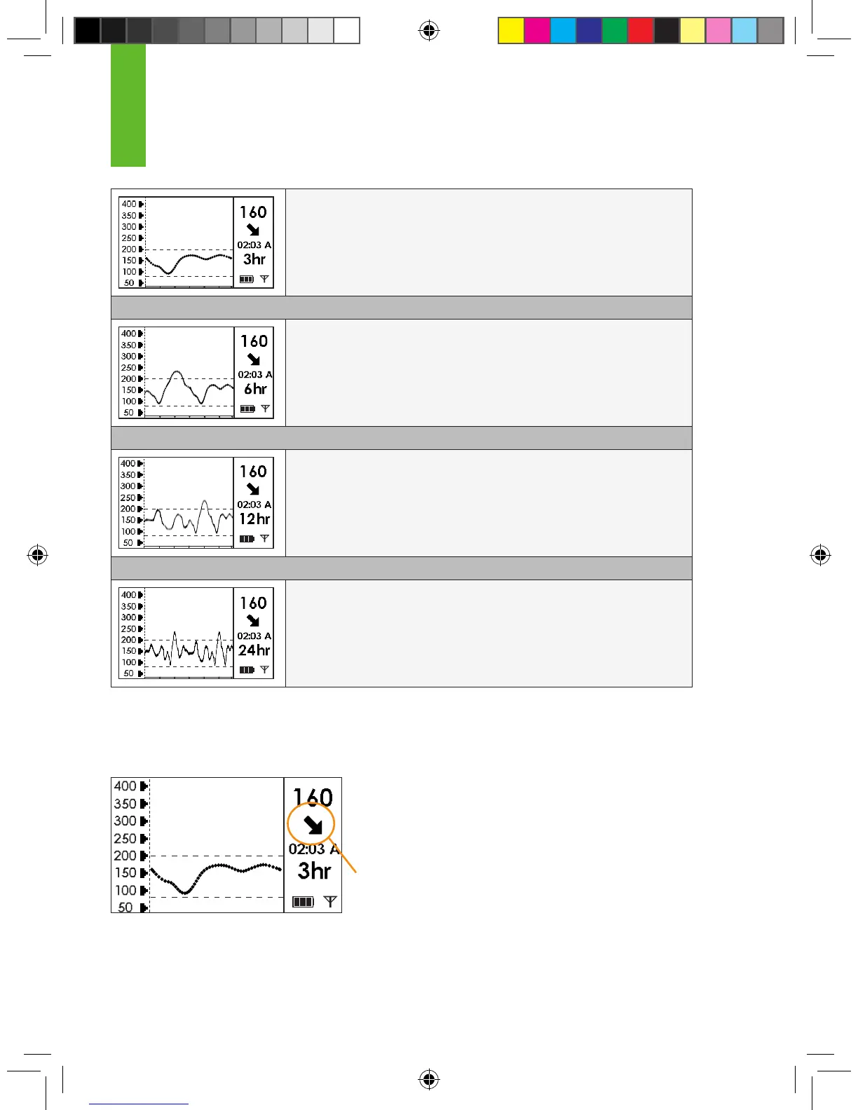 (3 hr) shows your current glucose reading and the last 3 hours of
