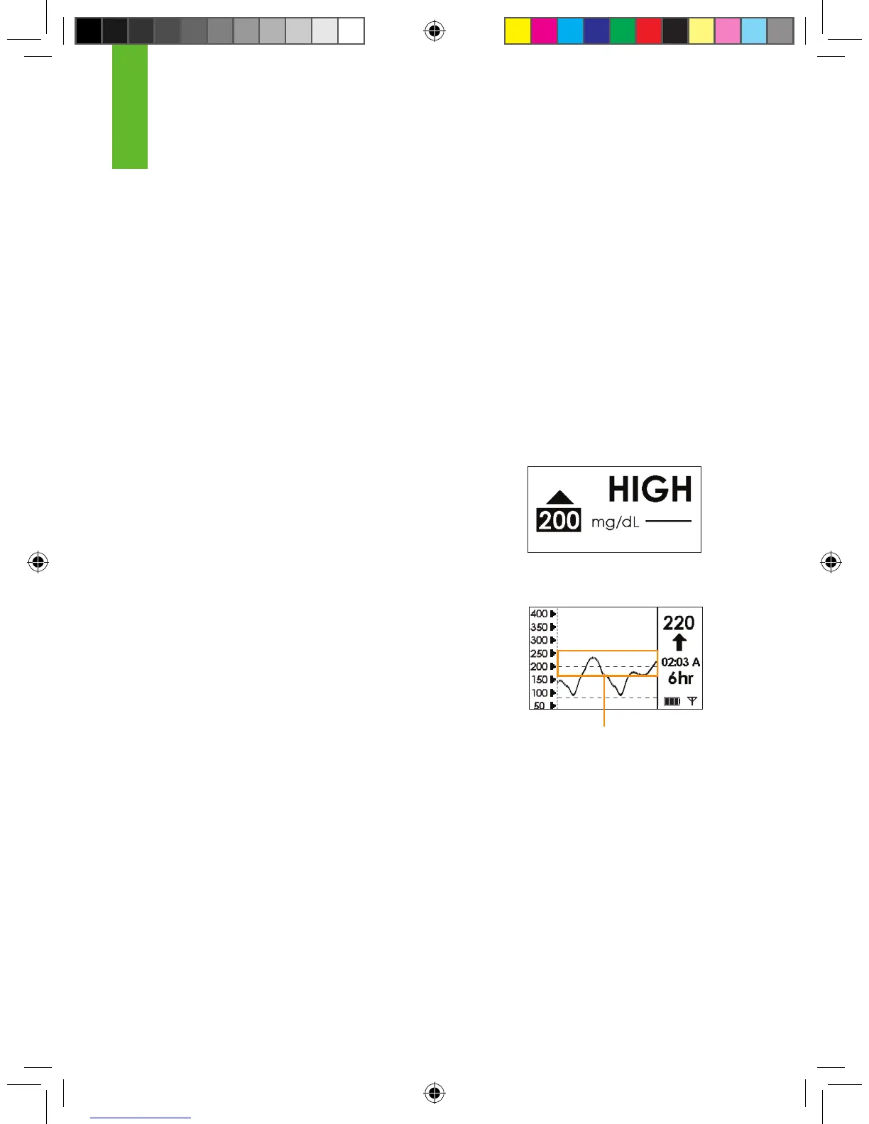 glucose readings are out of your “target range.” The High and Low Glucose Alerts also have