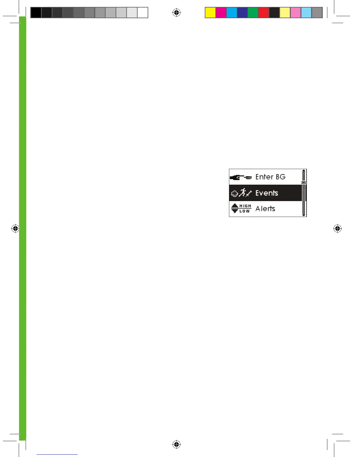 7. In the individual Events Menus, use Up p and Down q Arrow buttons to scroll through the
