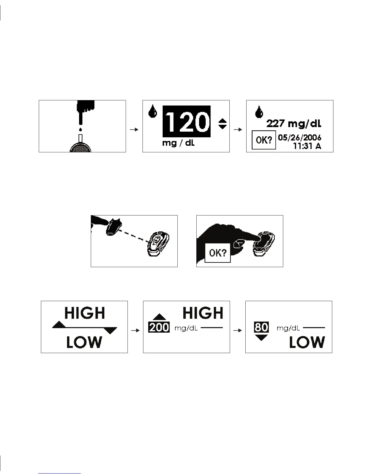 High/Low Alert Settings Screens (See Section 7.1)