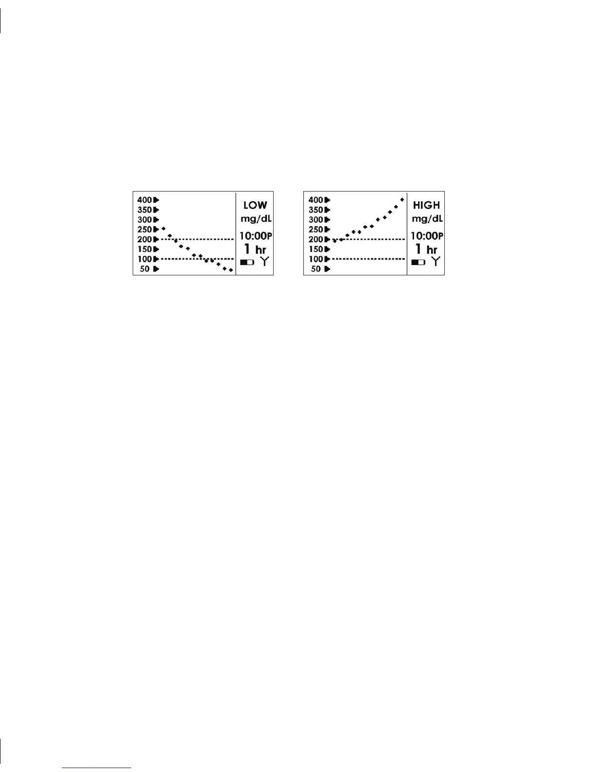 e “dashed lines” on the Glucose Trend Screens are the High Alert and Low Alert •