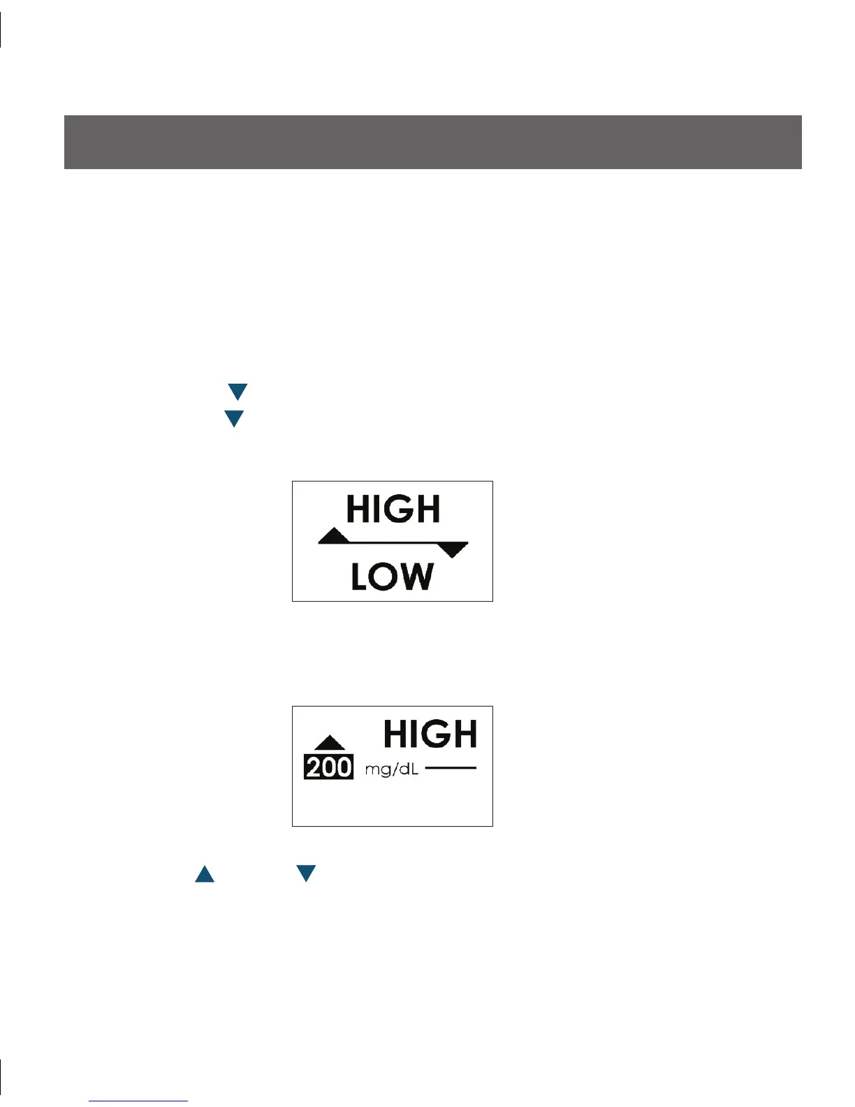 • or Down Arrows to increase or decrease the High Glucose Alert