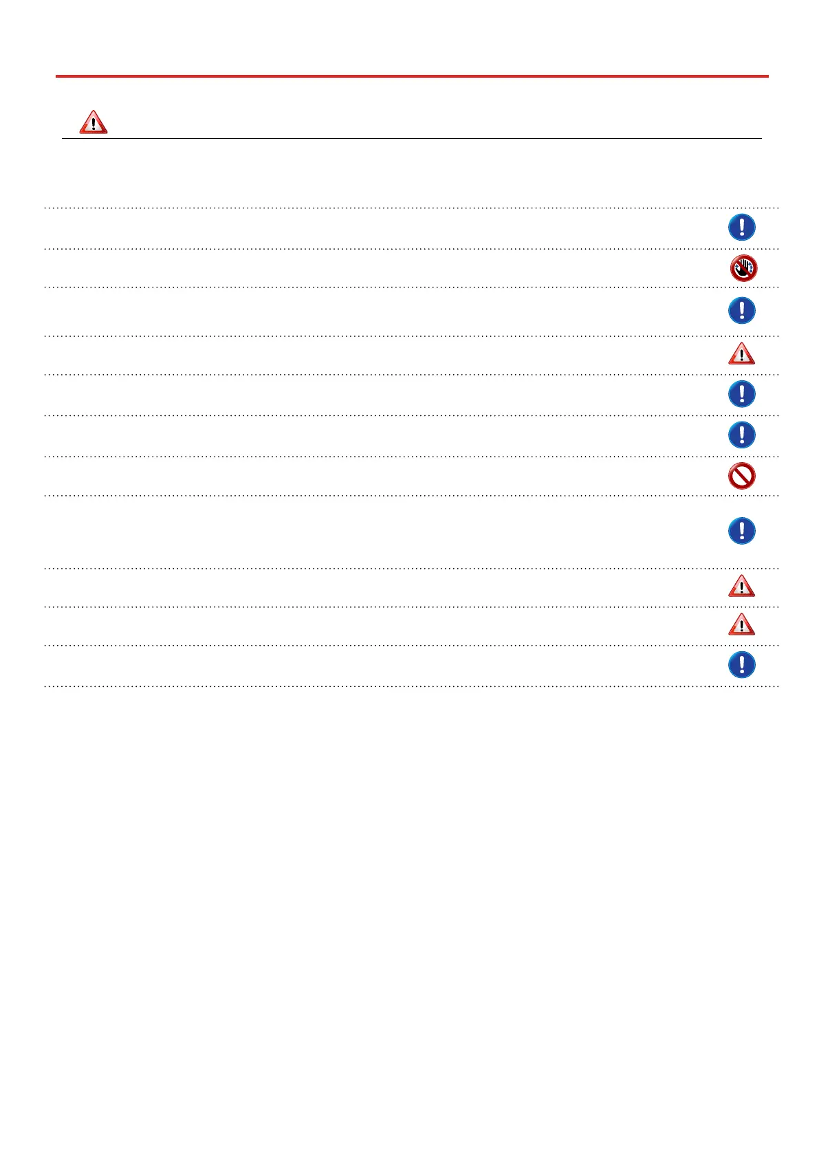 Always follow the following precaution listed below to avoid user to the risk of serious injury or even death from electrical shock, fire
