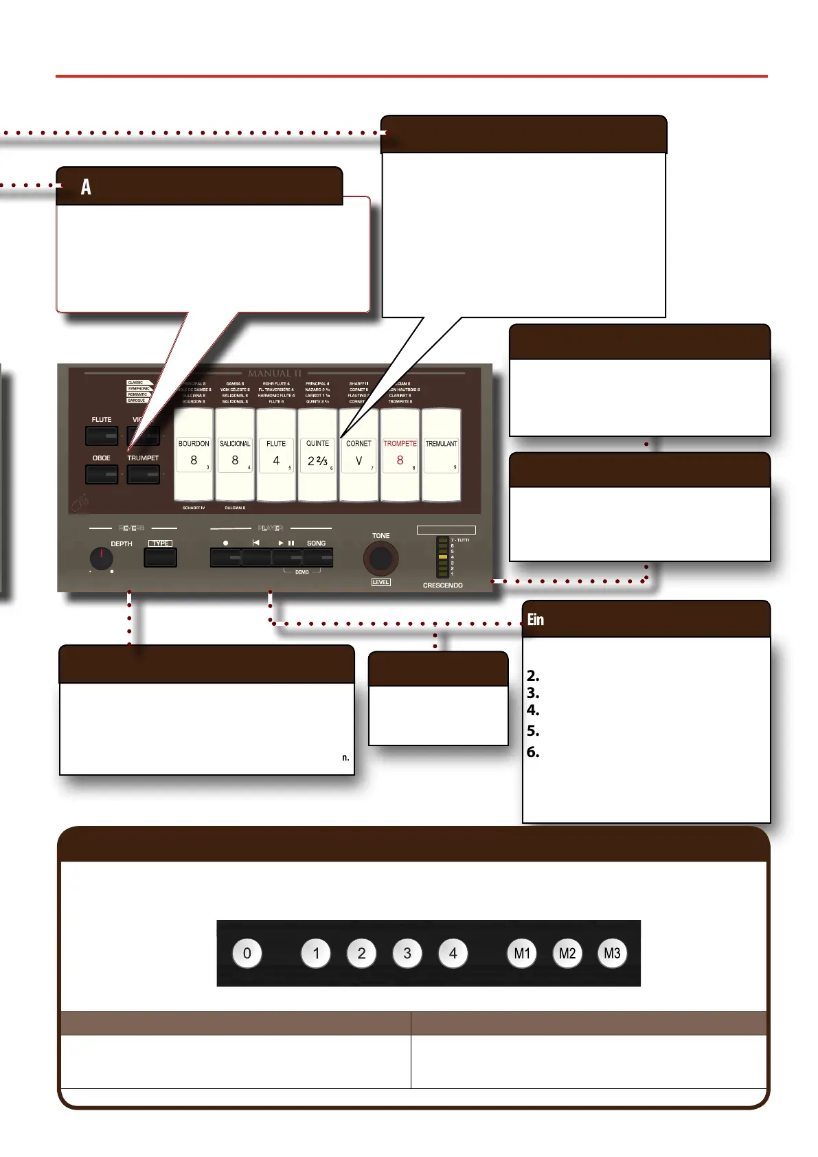 Die CLASSICO L3 verfügt über vier Registerspeicher und drei Speicherbänke (für insgesamt 12 Registerspeicher), die über die Speicher-Pistons [M1/2/3]