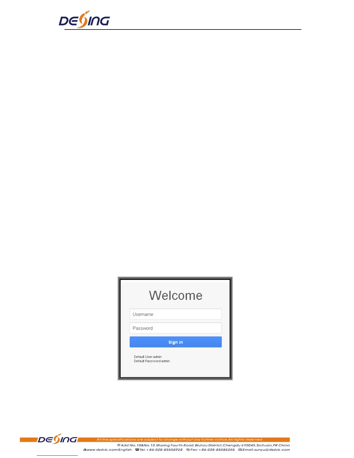 default Username and Password are “admin”. And then click “Sign In” to start the device