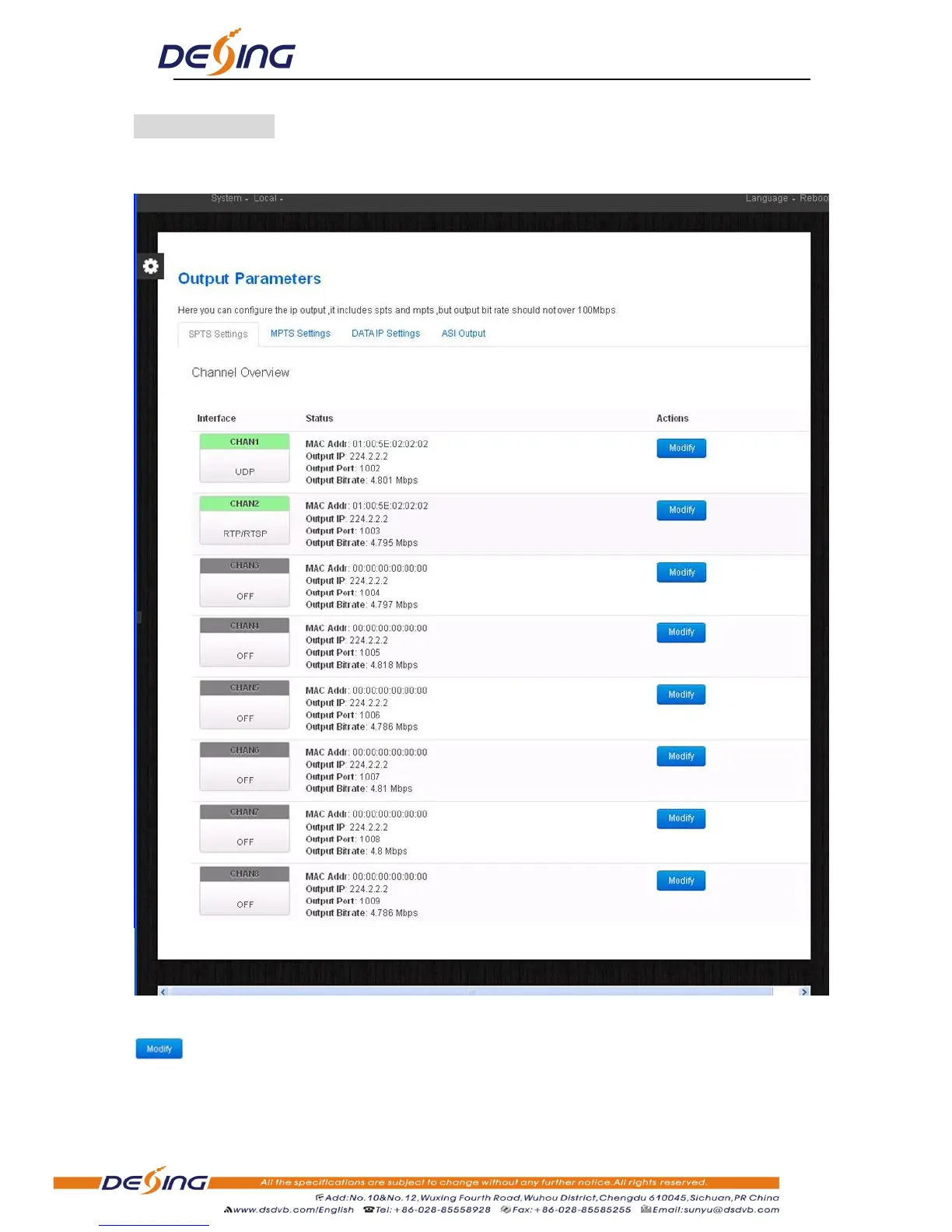 Under this menu, user can configure the 8 output SPTS parameters separately. (Figure-6)