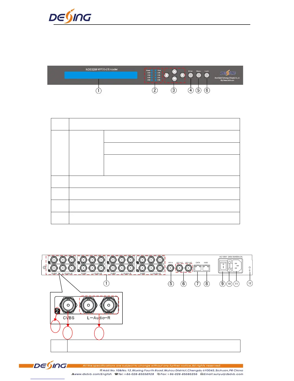 Dexin NDS3208 - 1.5 Appearance and Illustration; Front Panel Illustration; Rear Panel Illustration