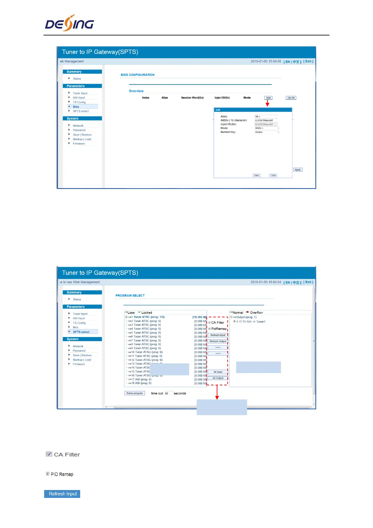 Parameter → SPTS Select: