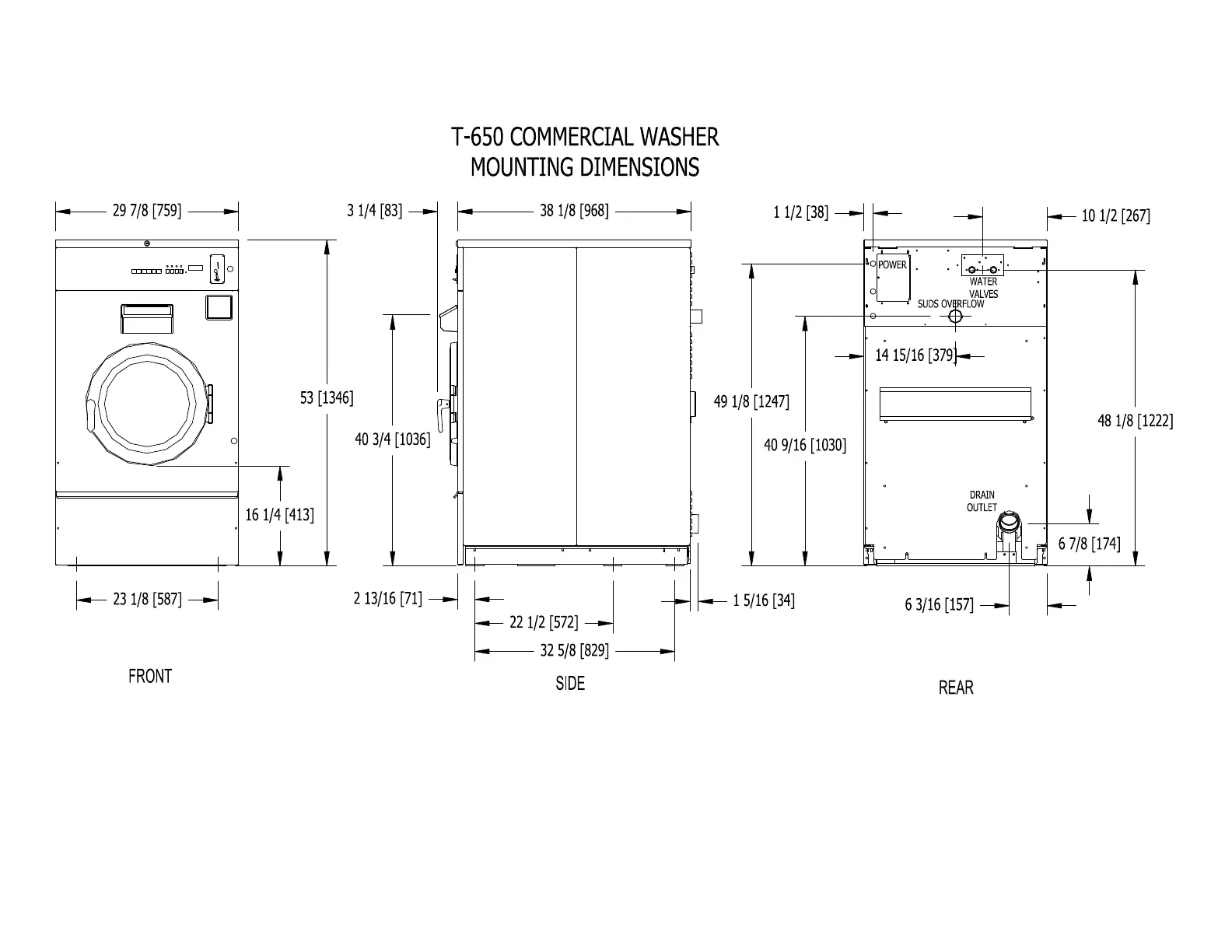 Dexter Laundry A Series - T-650 Commercial Washer Dimensions