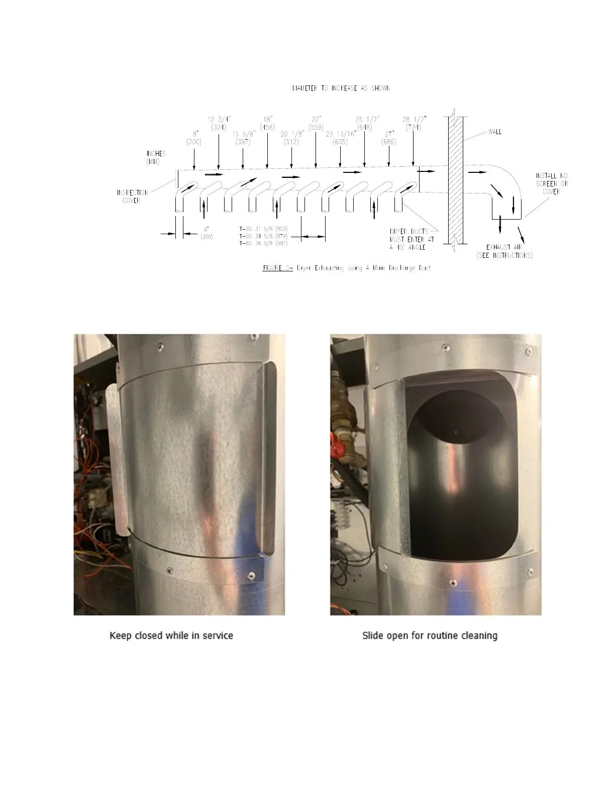 The exhaust duct clean-out panel (as shown below) must be closed while the dryer is in service: