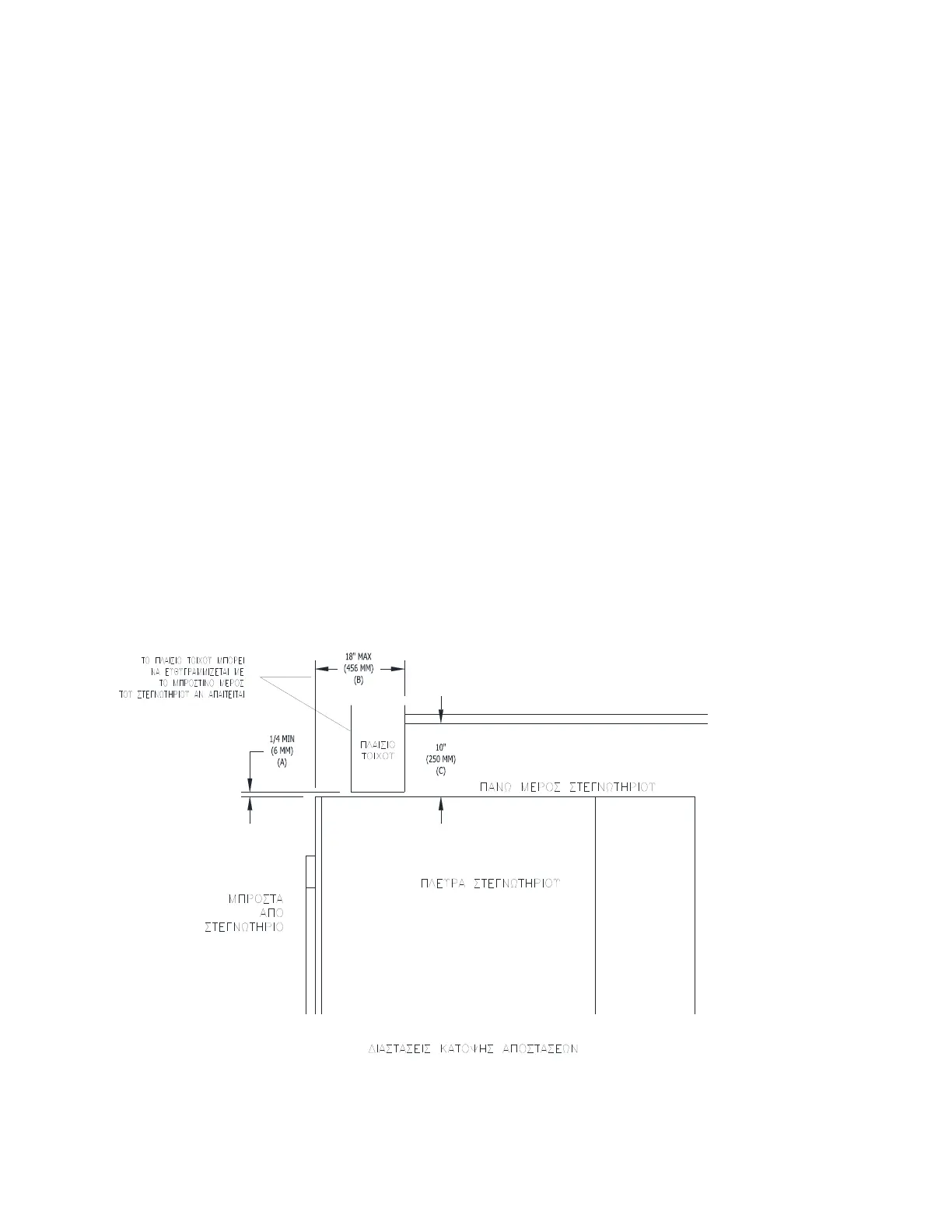 0 mm (0 ίντσες) για το πλαίσιο τοίχου στο πάνω μέρος μέχρι 457 mm