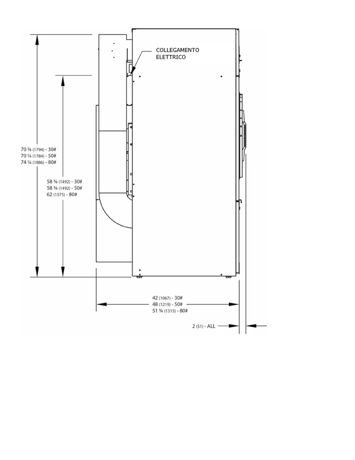 Figura 6-2 Vista laterale dell'asciugatrice a cestello singolo