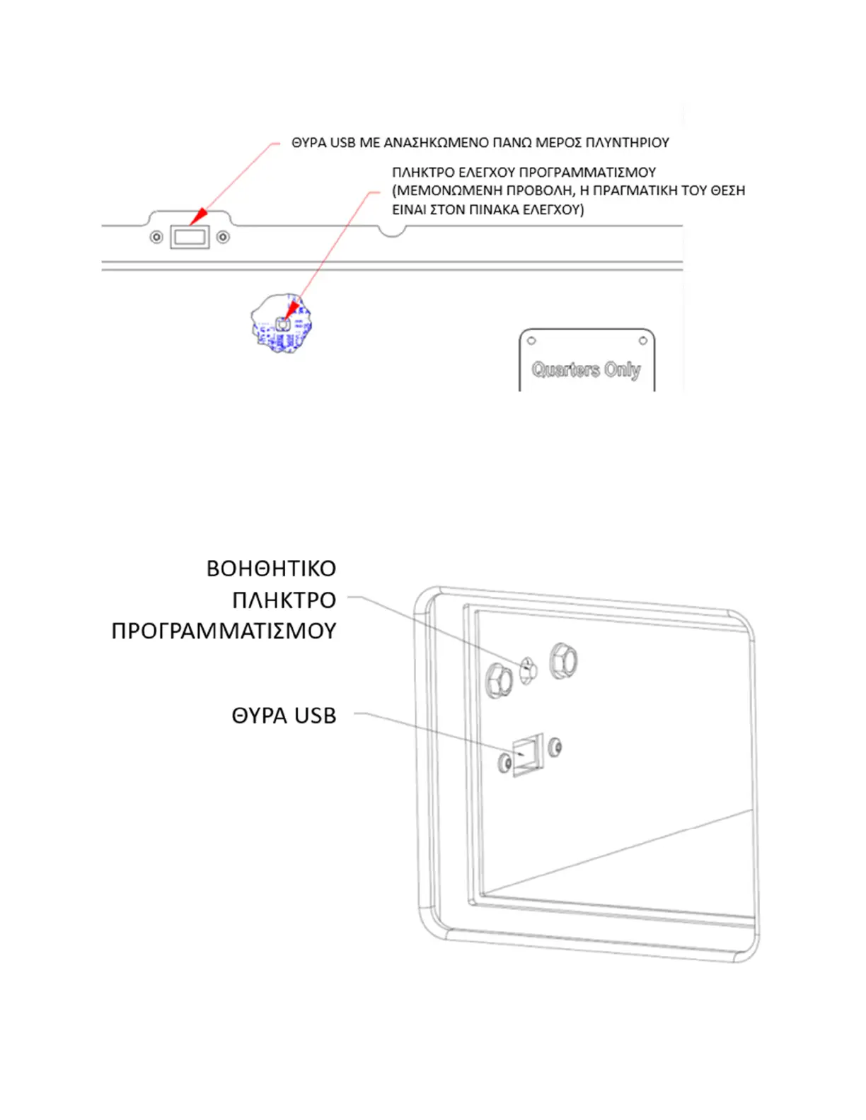 πάνελ και ένα βοηθητικό πλήκτρο βρίσκεται μέσα στον κερματοδέκτη.