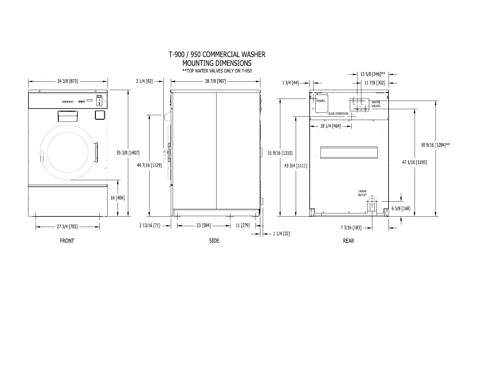 Figure 7-30 T-900 Commercial Washer Dimensions