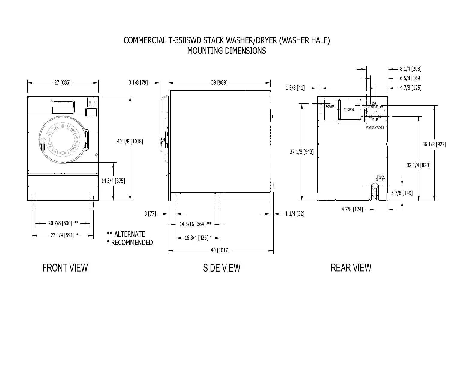 Figure 7-33 T-350 SWD Commercial Washer Dimensions