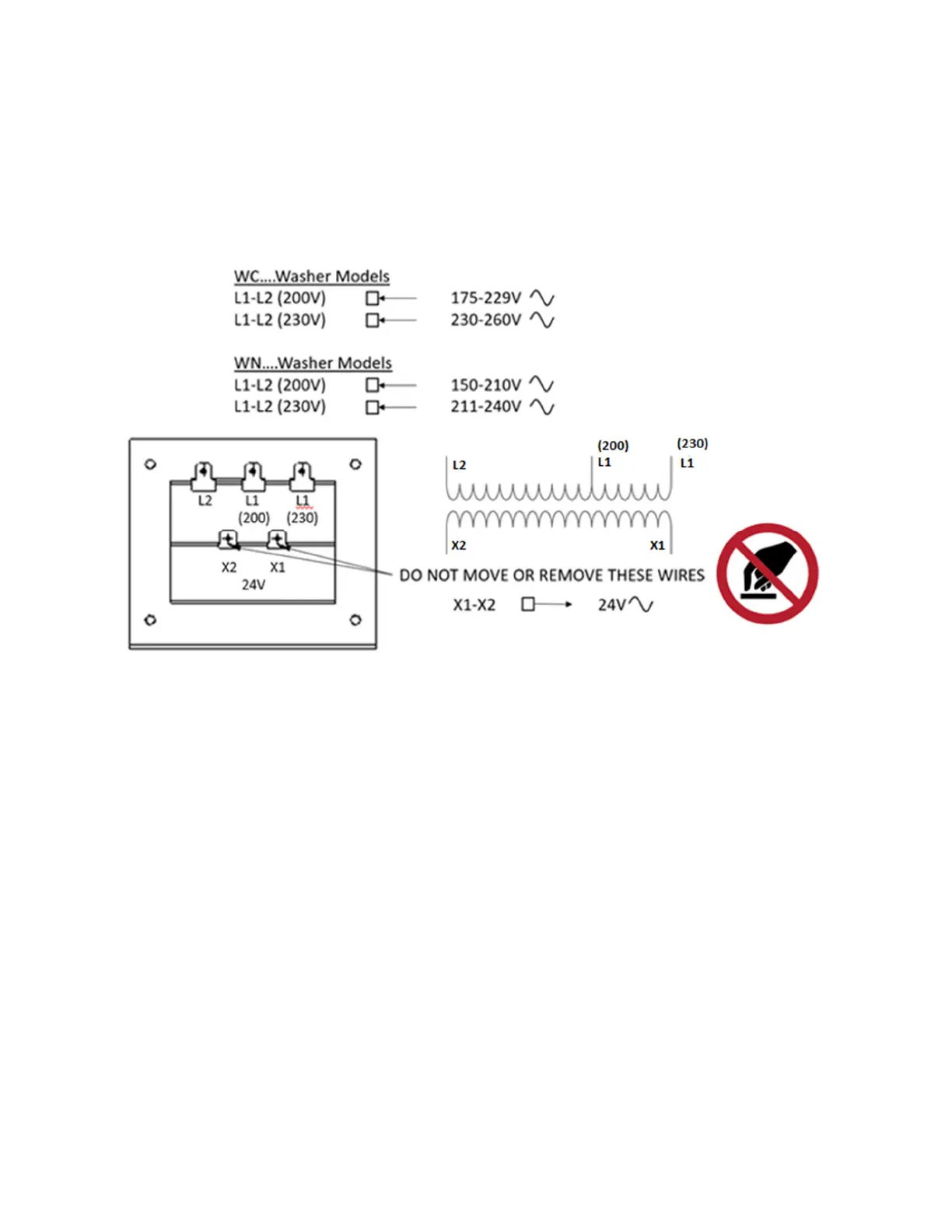 volts down to 24 volts. There are two terminals on the controls transformer for the primary