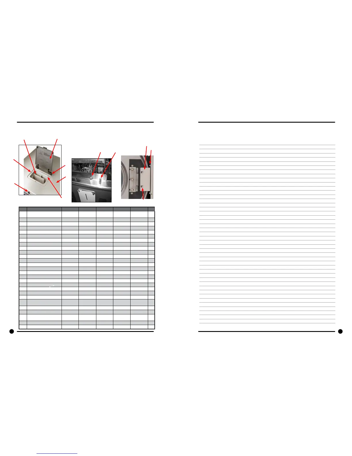 Cabinet and Front Panel Group Part # by Model Continued