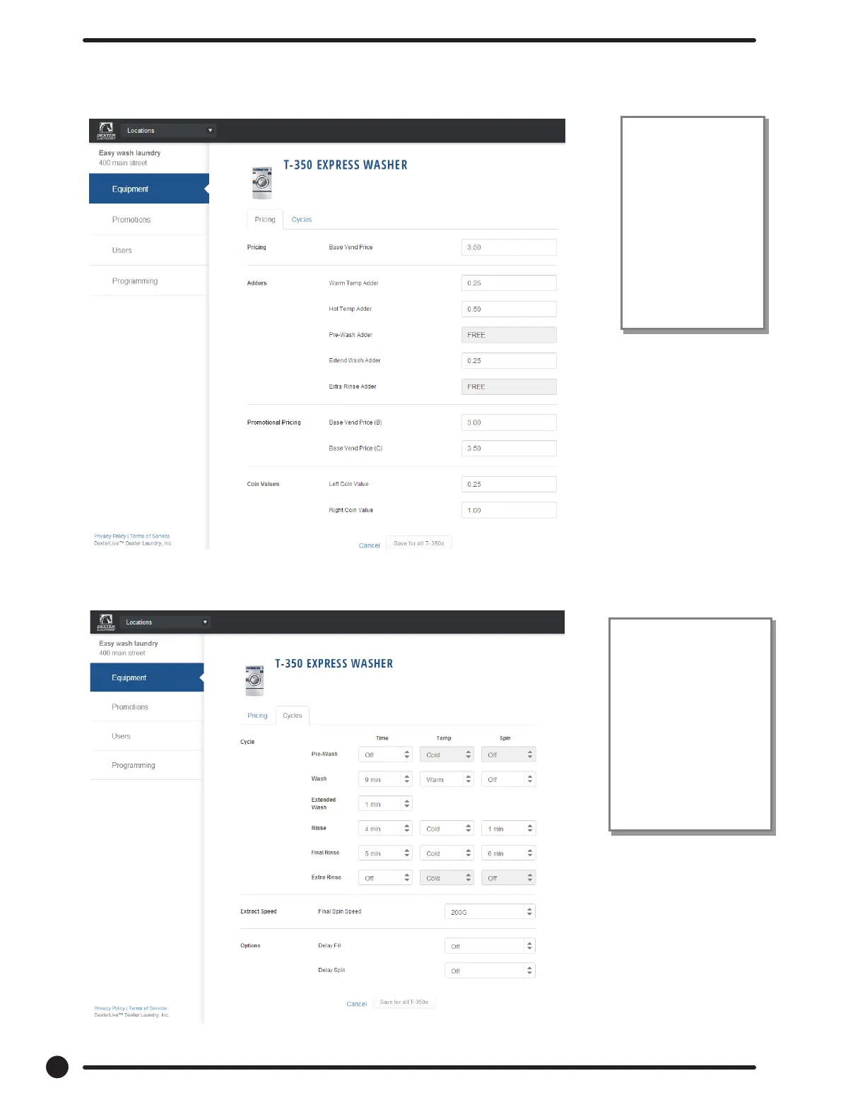 wish to modify, and then select “Pricing”. (Equipment Tab and Machine Settings Tab)