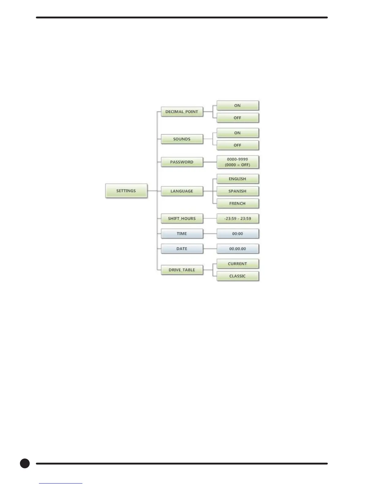 in the Settings options to factory default, press “Enter” when the “DEFAULT” prompt is shown. Press “En-