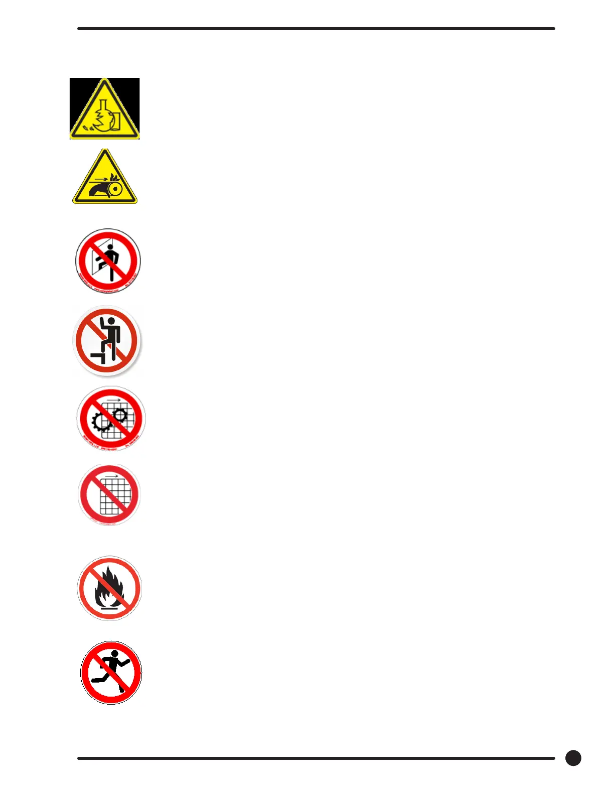 Prohibited! Do not step or stand on this equipment.