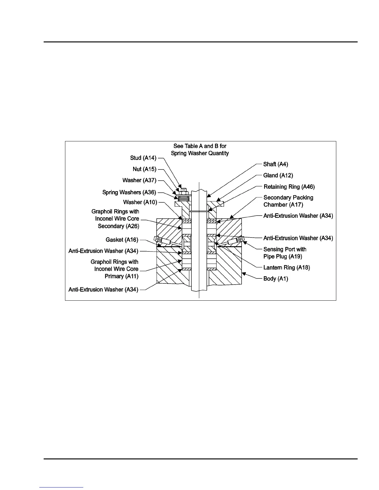 • The gland (A12) and the gland nuts (A15) and the new spring washers (A36)