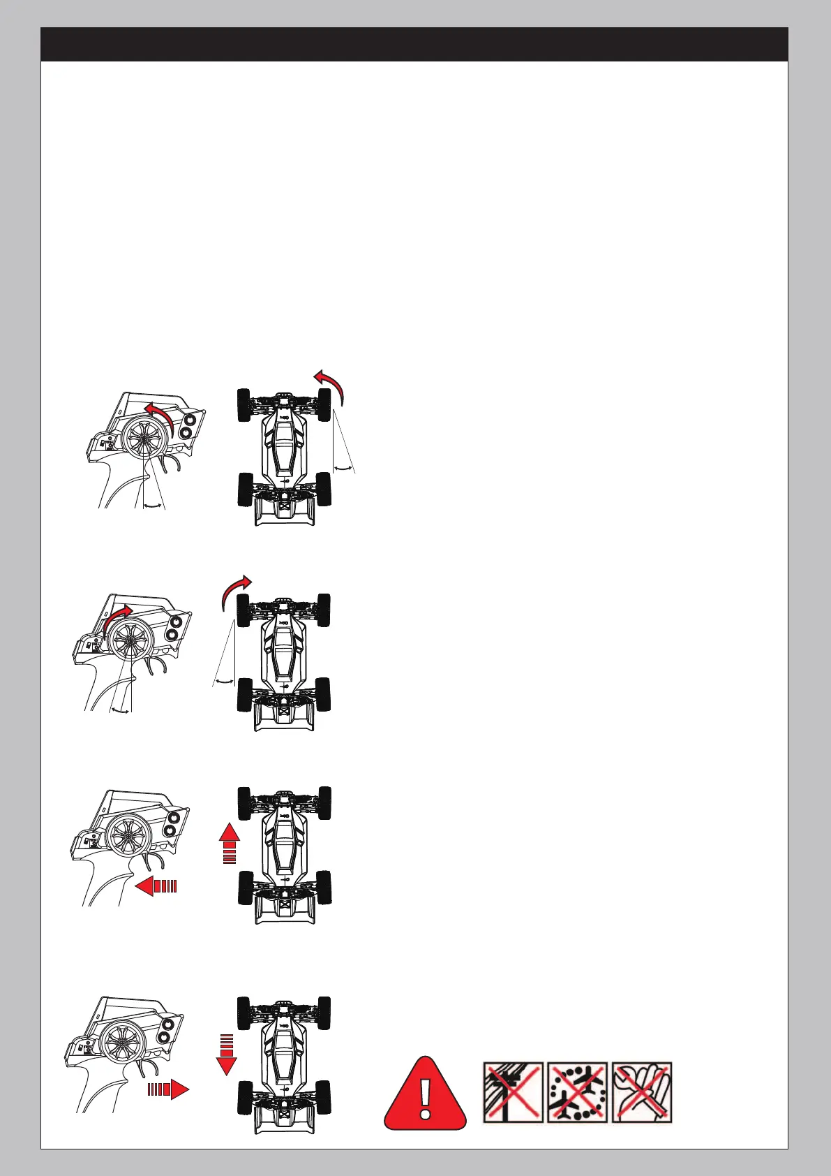 After driving, first turn off the model and remove the battery from it, then turn off the transmitter.