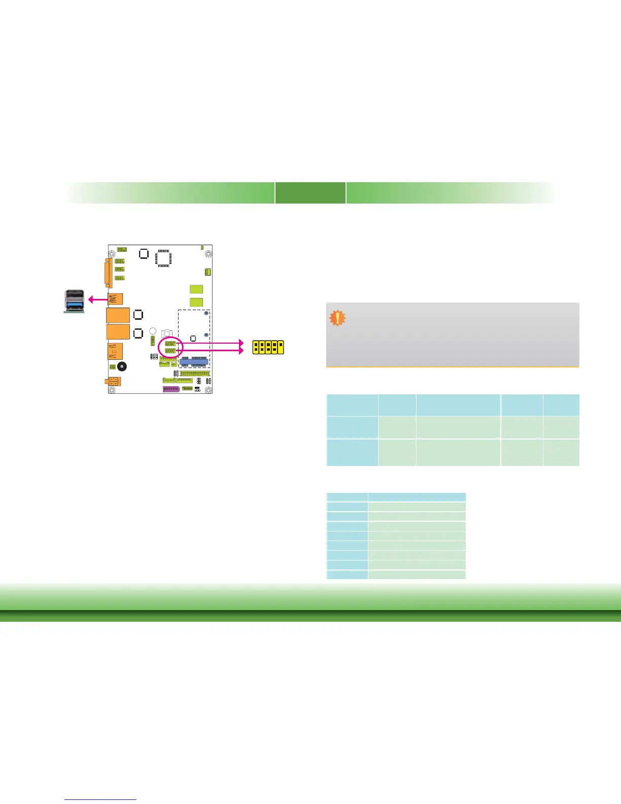 The system board is equipped with one onboard USB 3.0 port (USB 0) and one USB 2.0 port