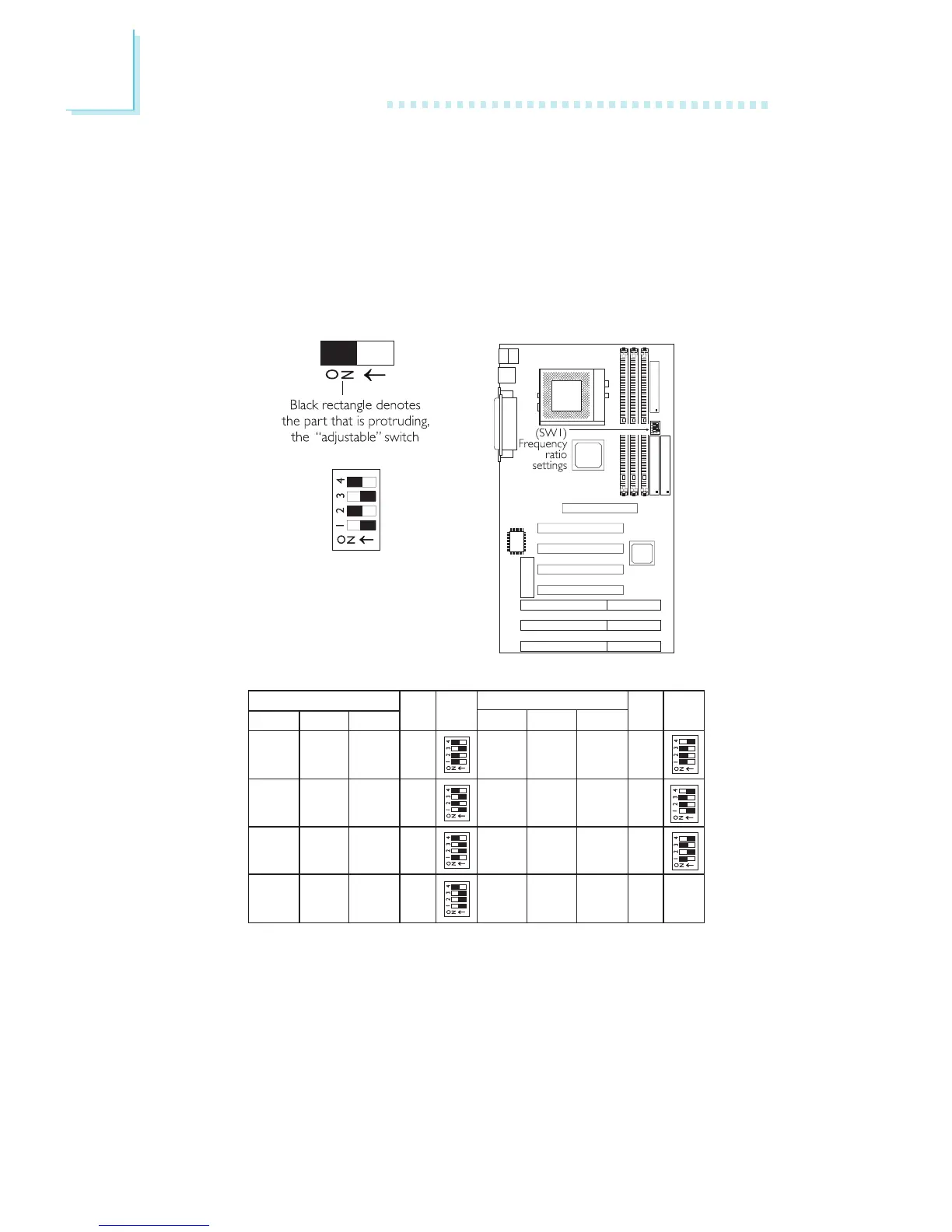 DIP switch setting. There are 4 switches on SW1. The black rectangle