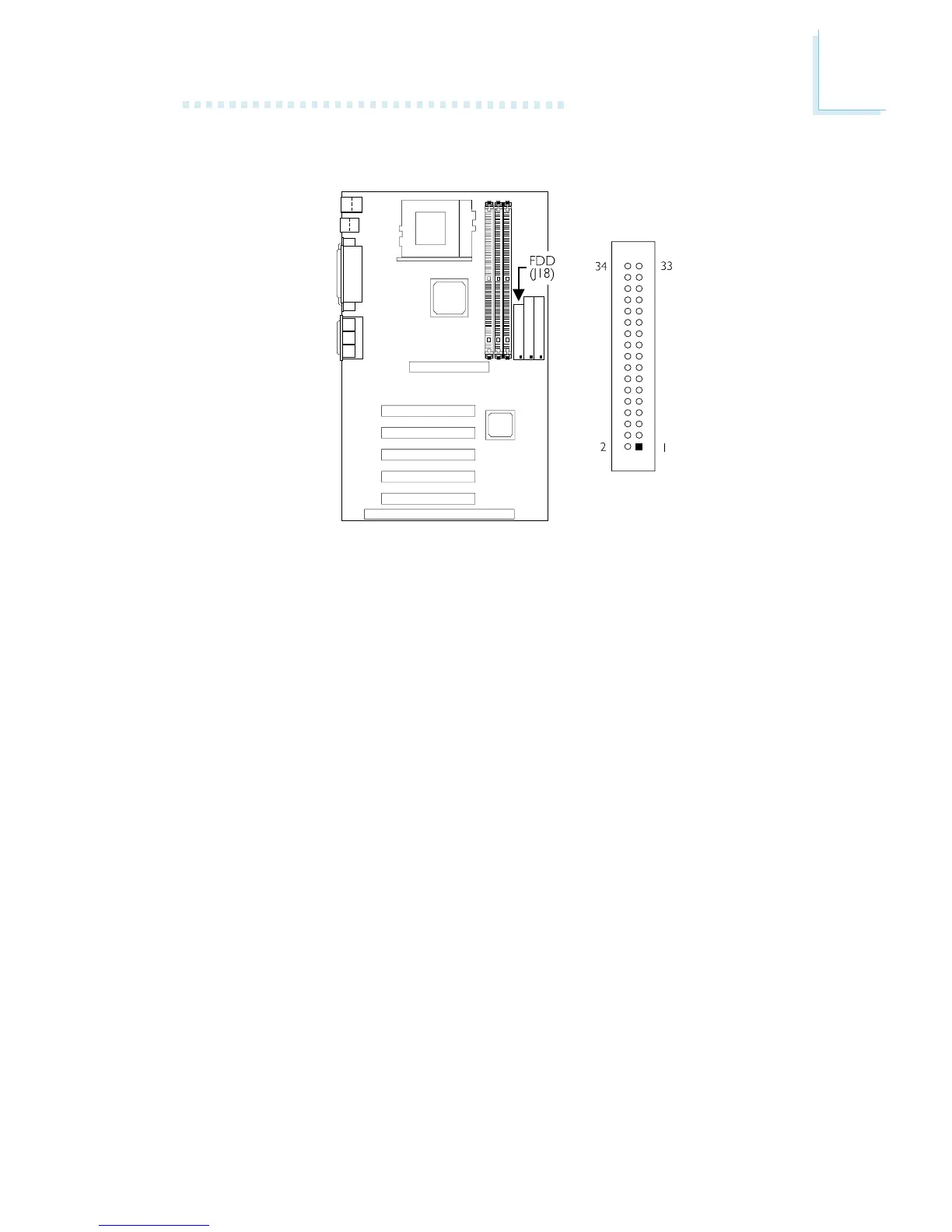 1. Install the 34-pin header connector of the floppy disk drive cable