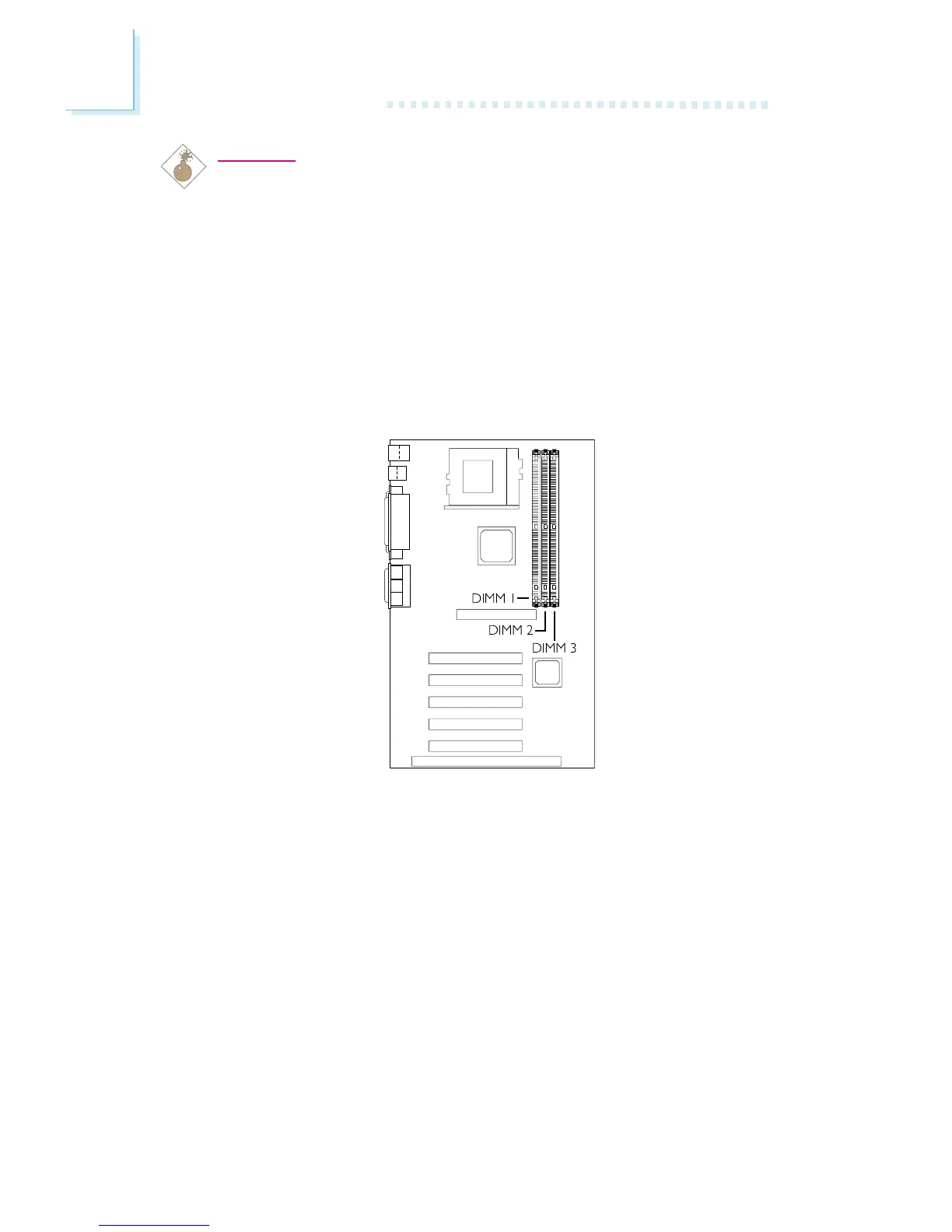 The system board is equipped with three 168-pin DIMM (Dual In-