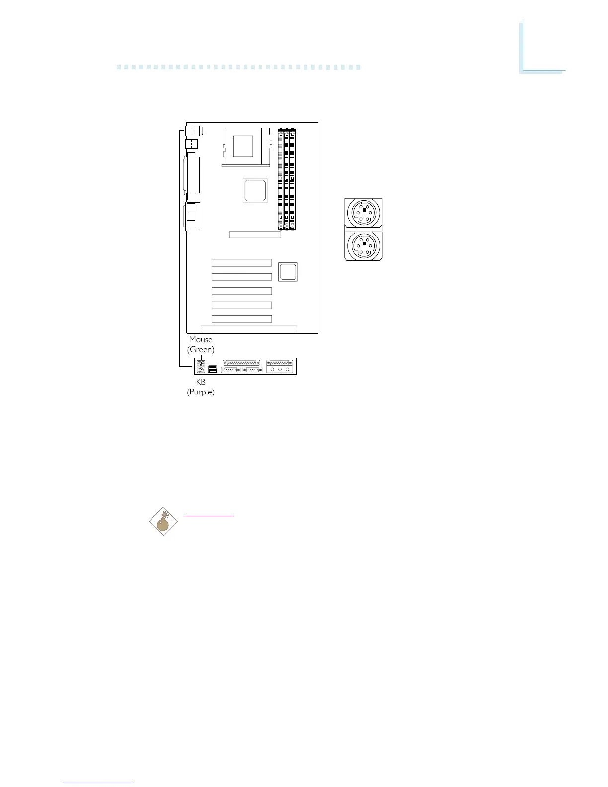 (Green) and PS/2 keyboard (Purple) ports - both at location J1 of