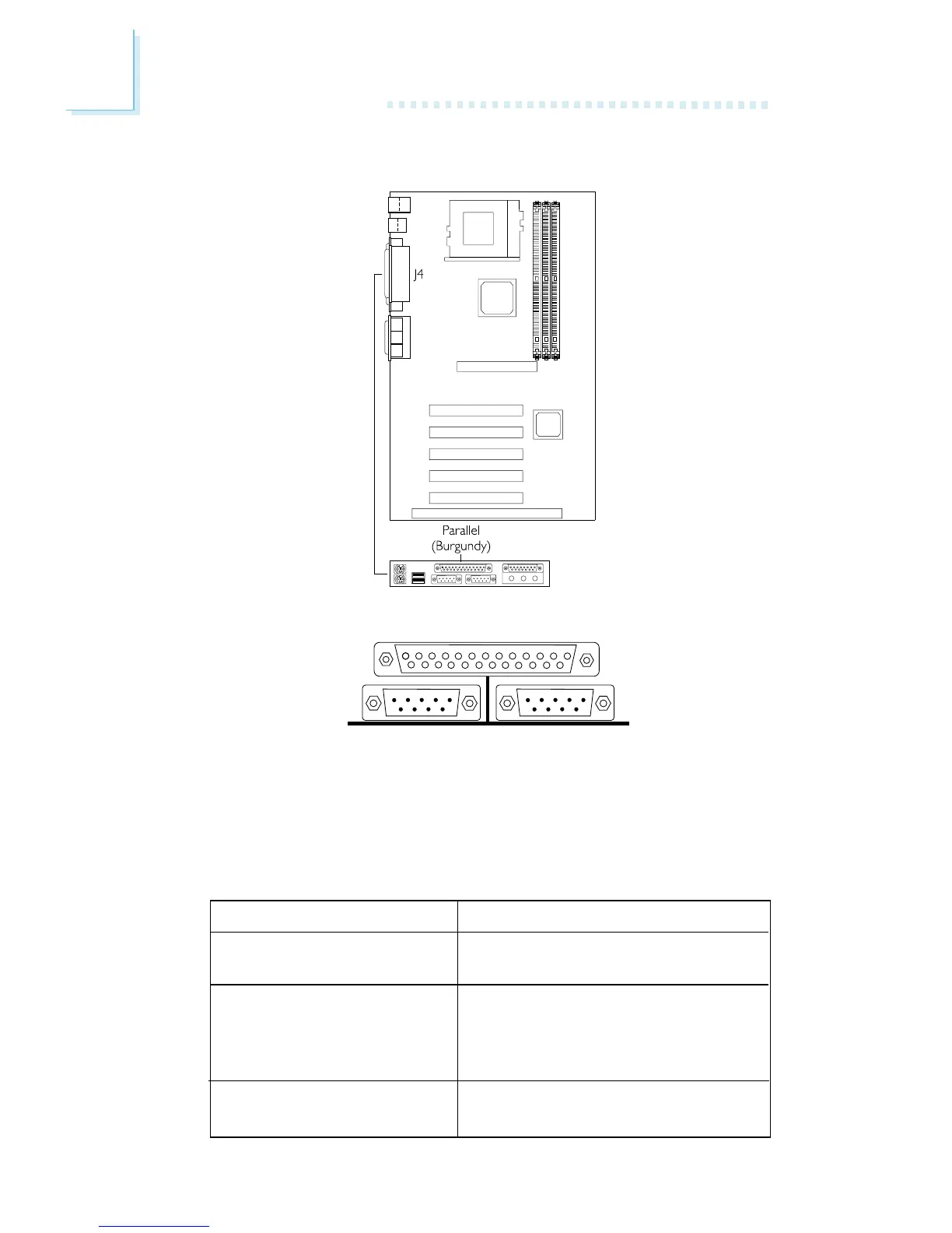 The system board has a standard parallel port (J4 - Burgundy)