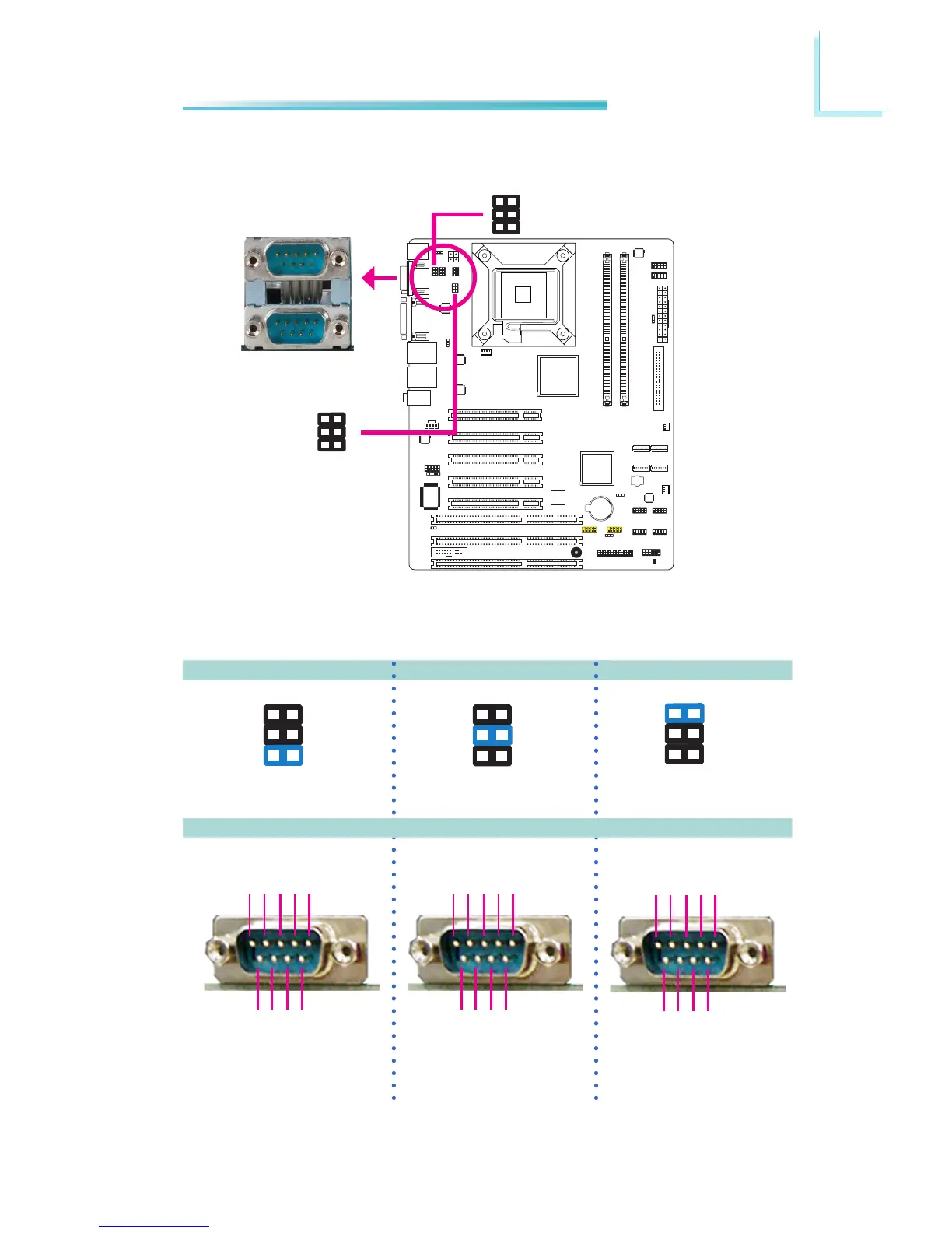 JP6 (for COM1) and JP2 (for COM2) are used to congure the COM ports to
