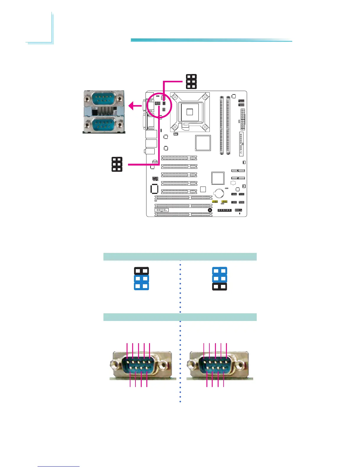 JP5 (for COM1) and JP3 (for COM2) are used to congure the COM ports to