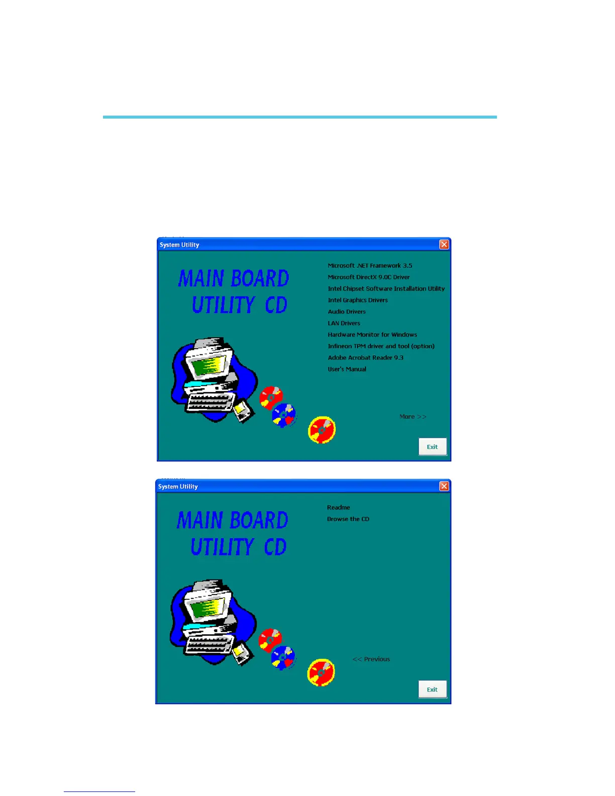 Insert the CD into a CD-ROM drive. The autorun screen (Mainboard Utility CD)