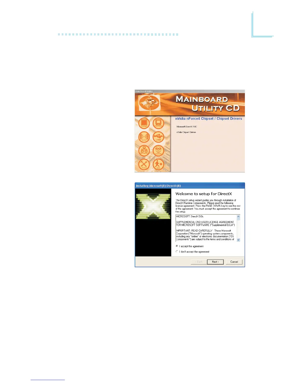 When you insert the CD, the default menu that will appear is the Chipset