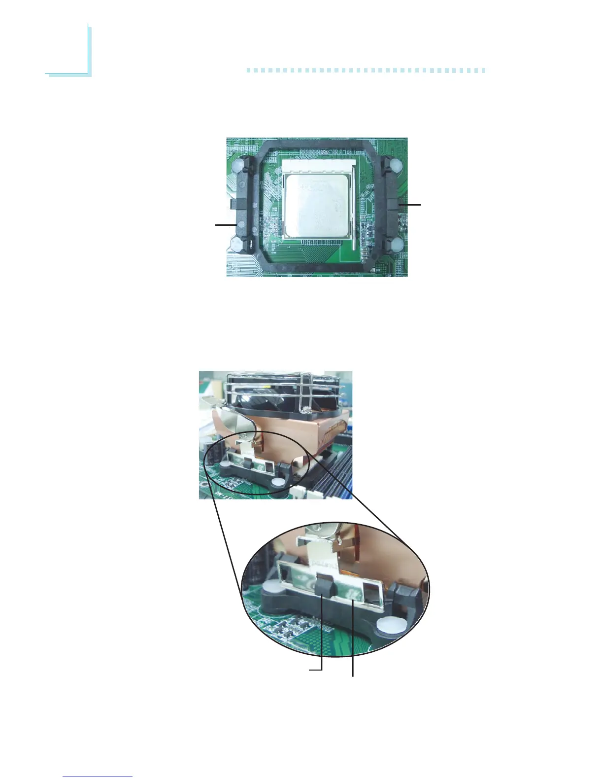 3. Place the heat sink on top of the CPU. Now hook one side of