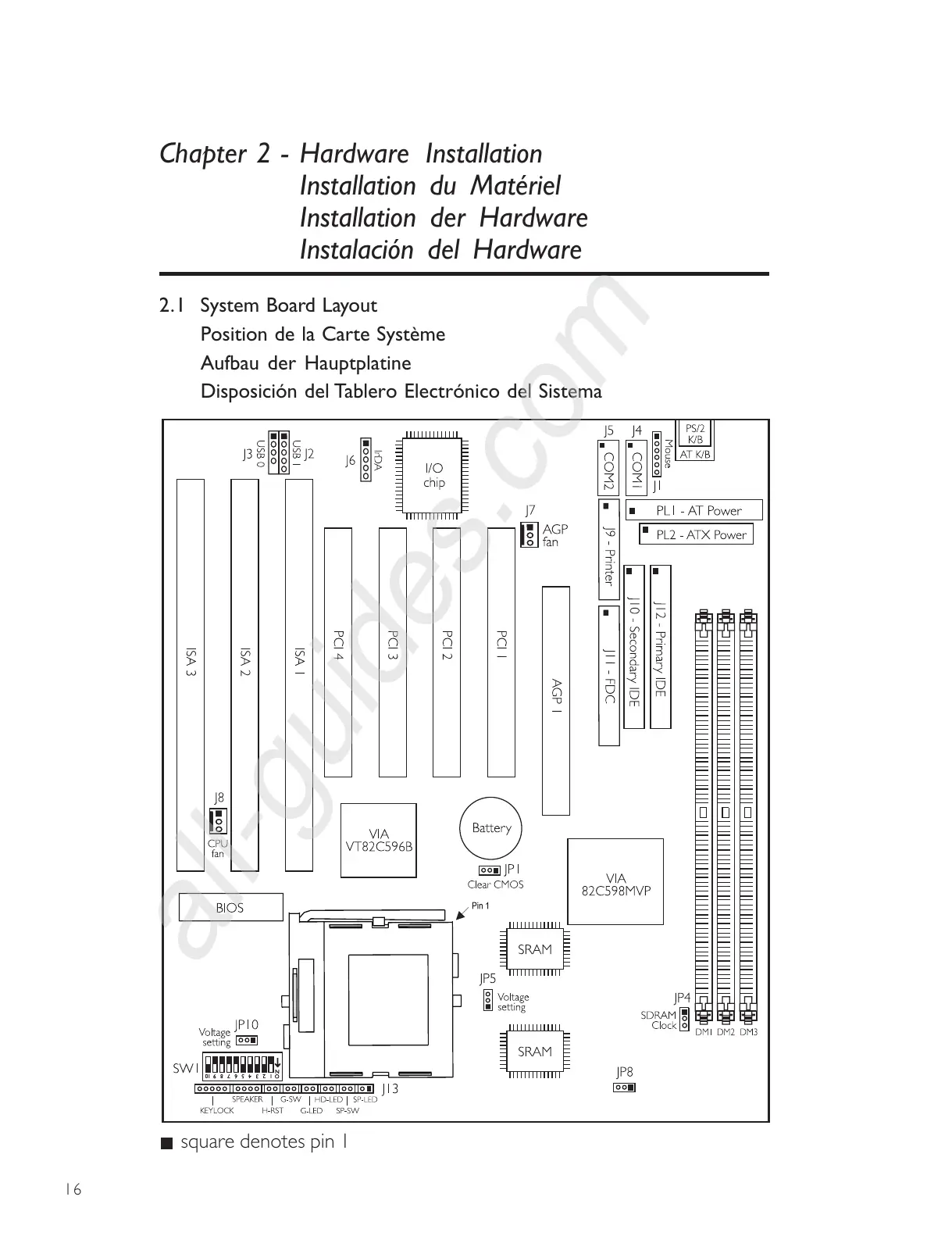 DFI K6BV3+/66 - Chapter 2 - Hardware Installation; 2.1 System Board Layout